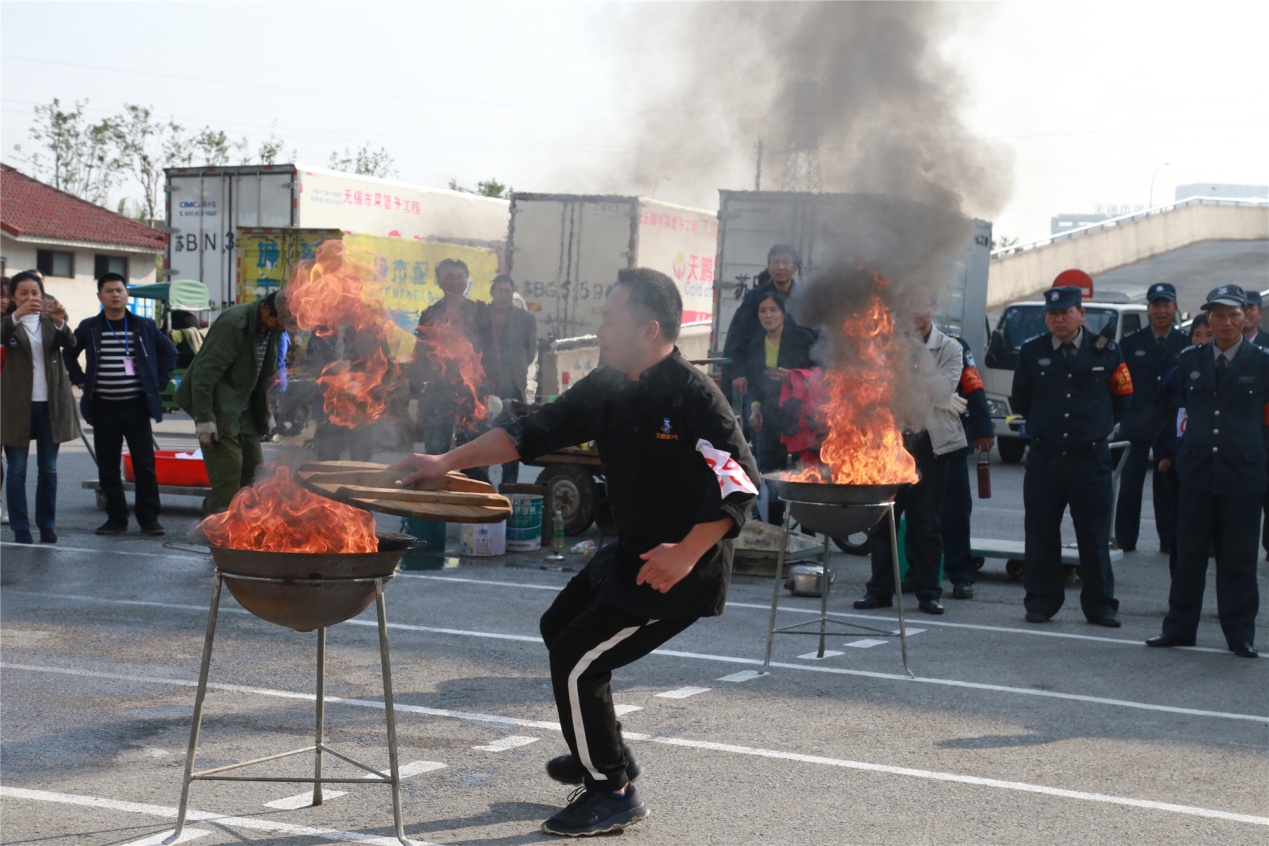 在比賽正式開始前,梁溪區消防隊員為天鵬集團職工、天鵬大市場經營戶展示風采,贏得了陣陣掌聲。本次比賽共設九個比賽項目,參賽隊員個個精神飽滿,斗志昂揚,運動員們均以百米沖刺的速度,緊密配合,奮勇爭先,以精準高效的手法完成了所有步驟,一盆盆赤焰的烈火被迅速撲滅,展現了運動員高超的競技水平和良好的精神風貌。圍觀的職工經營戶不斷加油助威,現場氣氛熱烈。經過激烈角逐菜籃子科室聯隊、天鵬食品隊、集團聯隊分別榮獲團體第一、二、三名